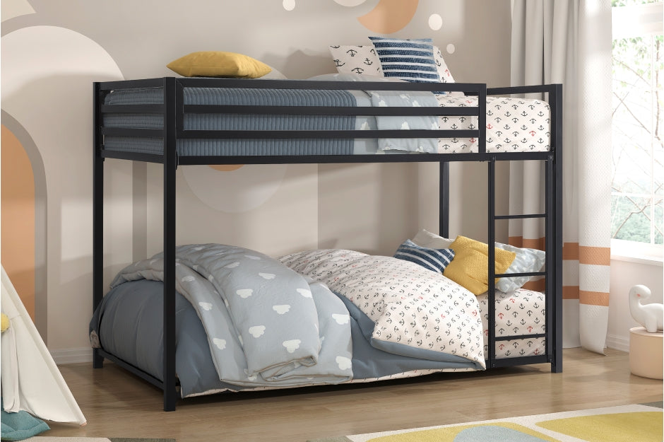 The ground-level platform of the optional twin-over-twin bunkbed is a unique twist on the look of the stacked bedroom staple, making bedtime a breeze, while calling dibs on the top twin bunk is made easy with the mounted ladder.