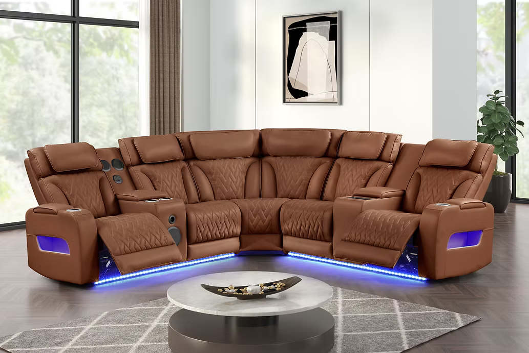 LAF Power Recliner & Power Headrest, Console, Cupholder, BT Speakers, Storage Arm, LED